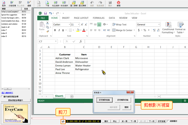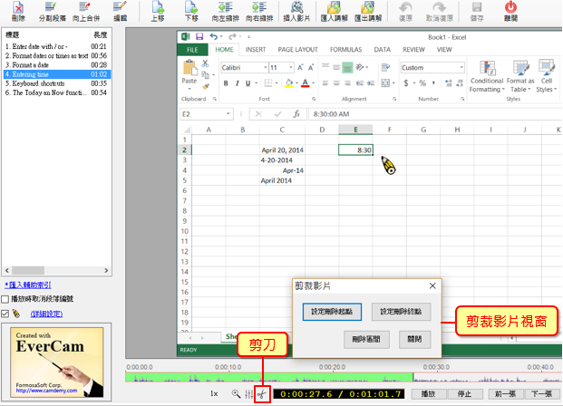 除了提供以段落為基礎的編輯之外,EverCam 同時提供段落內的影片剪輯功能。