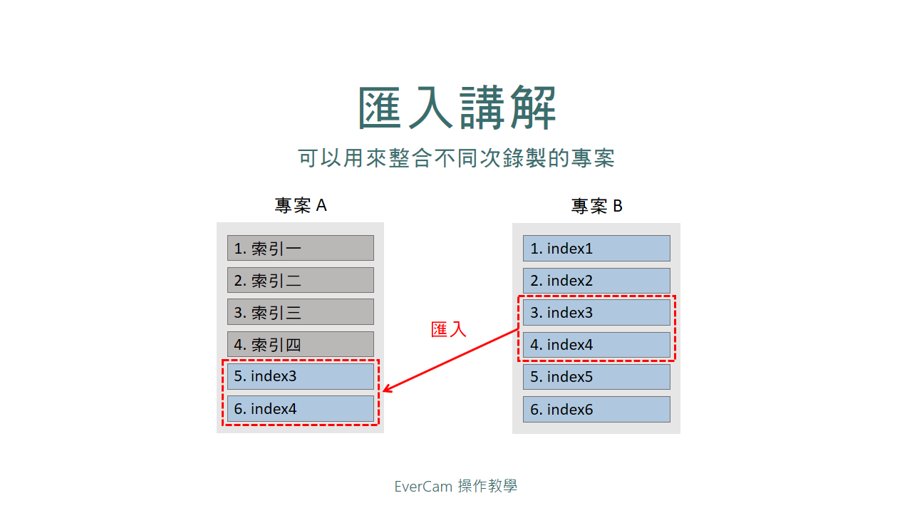 匯入,通常應用在將教學影片加上共同的片頭
