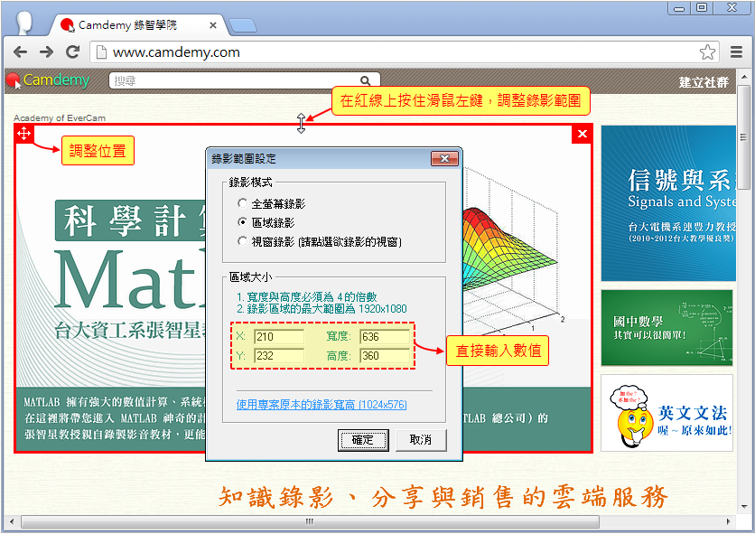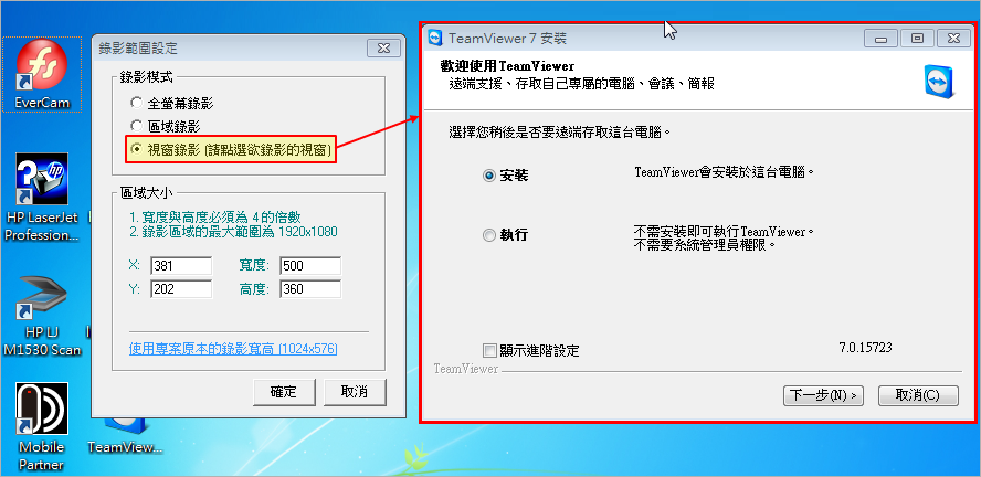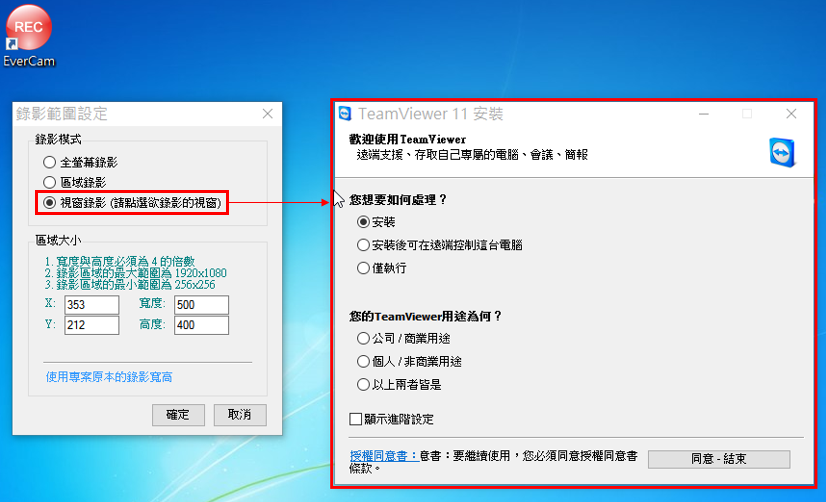 EverCam 提供區域錄影的功能,包括特定範圍或是特定視窗。