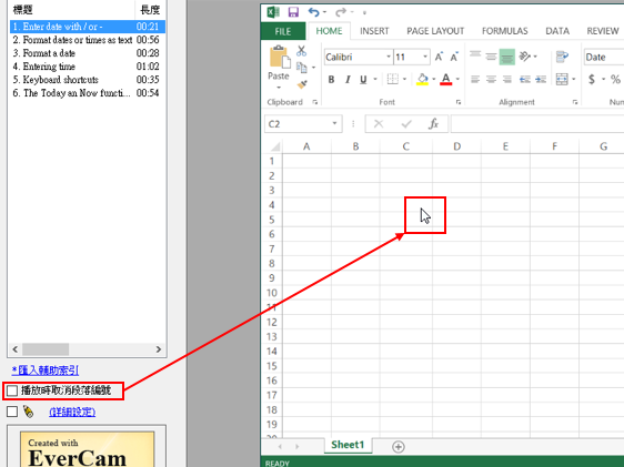 EverCam 教材一直有一項優點 ~ 就是利用較大的游標來引導講解的重點,讓閱讀更輕鬆。