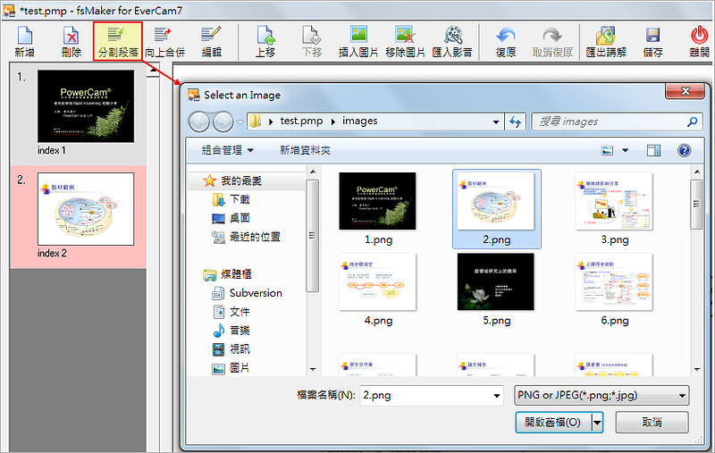fsMaker 是一個簡易的教材製作工具,可以將已錄好的影音檔案與簡報結合,並匯出成 EverCam 教材。