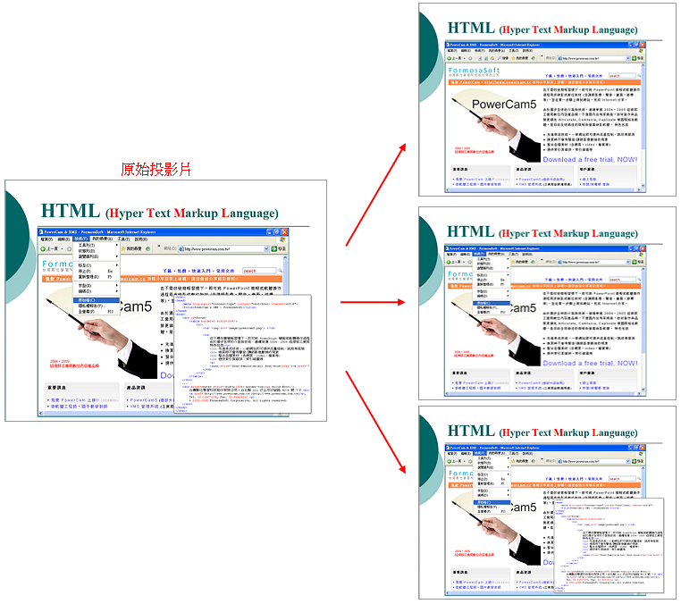 每張投影片將轉成圖檔,若投影片中有設計動畫,請將重疊的畫面獨立成一張投影片 (