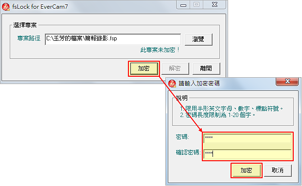 在「開始 / 程式集 / EverCam 7 / EverCam 7 Tools」選擇 fsLock。