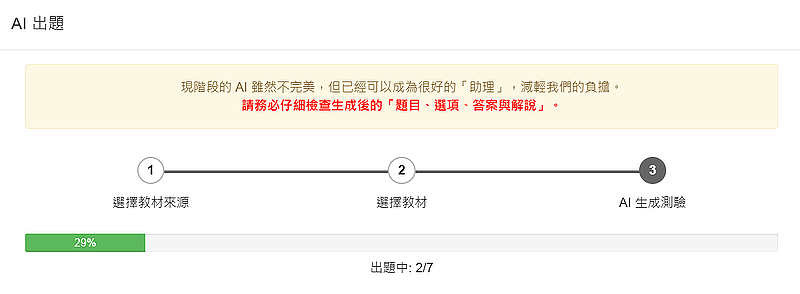 雖然 AI 出題無法 100 正確或完美,但已經可以幫助我們節省大量的時間囉