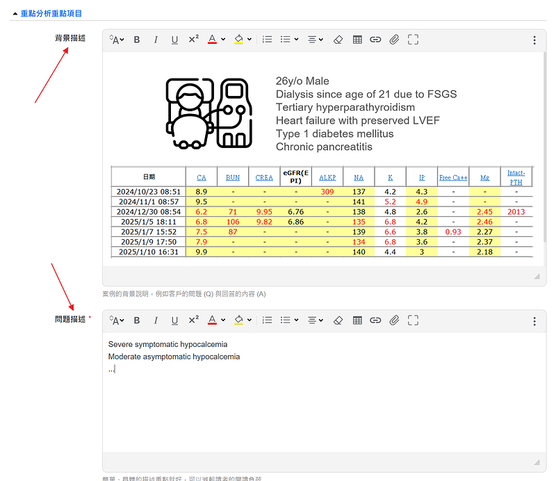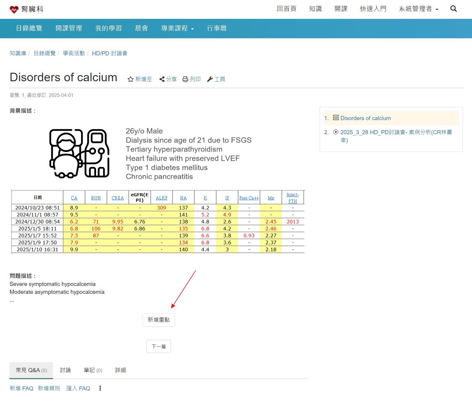 - 撰寫病例分析,將每一個分析的重點,用「新增重點」的方式整理