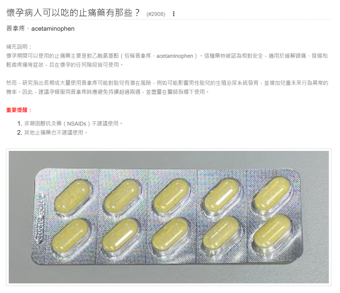「遇到懷孕的病人,想了解要開哪一種止痛藥?」