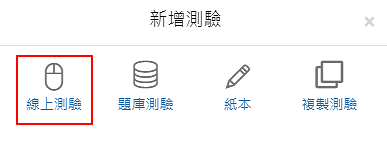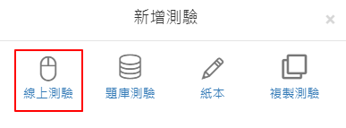 點擊課程內容旁的「新增 / 測驗」,接著點擊「線上測驗」。