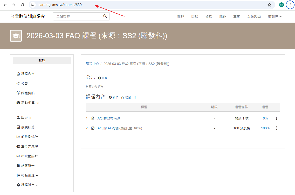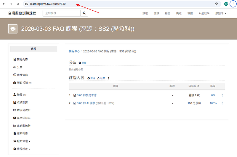 建立好課程後,
