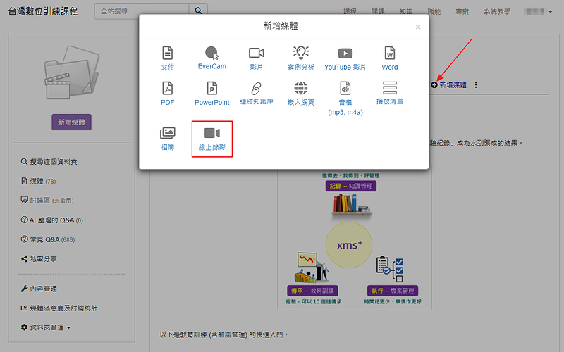 只要上課時,直接在 xms+ 網站執行「線上錄影」就搞定。